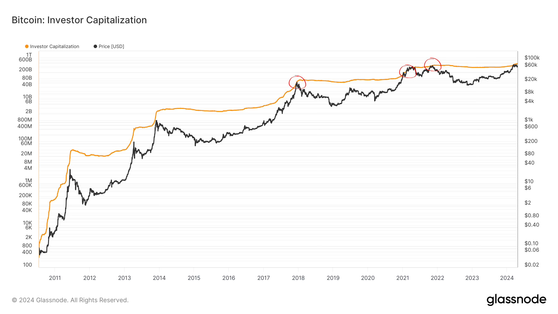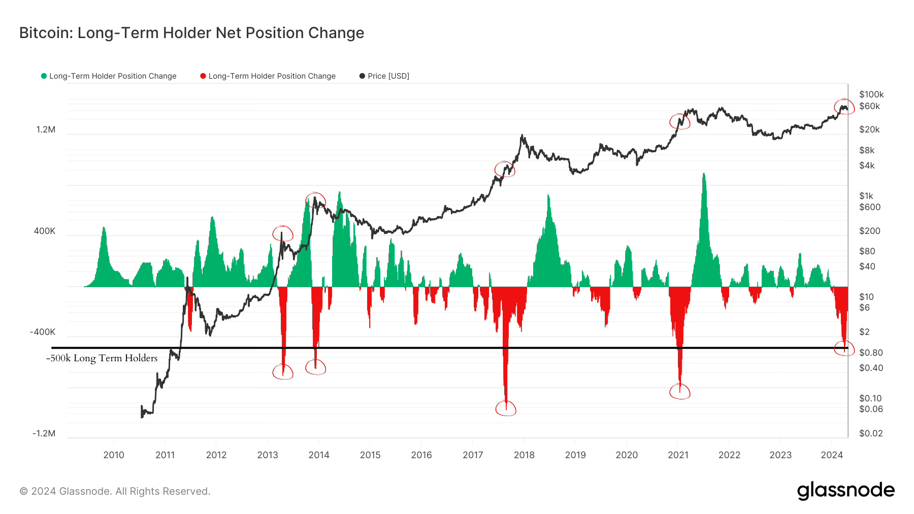 “Moves below 500k have usually come during, or right before cycle tops.